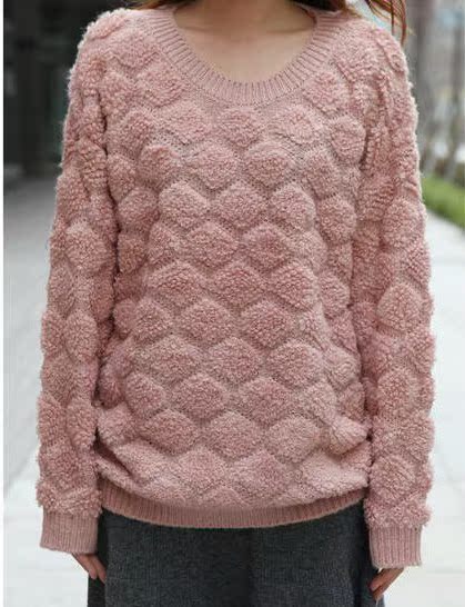2012日系韩国欧美新冬款可爱毛球球立体圆领套头毛衣AB4627