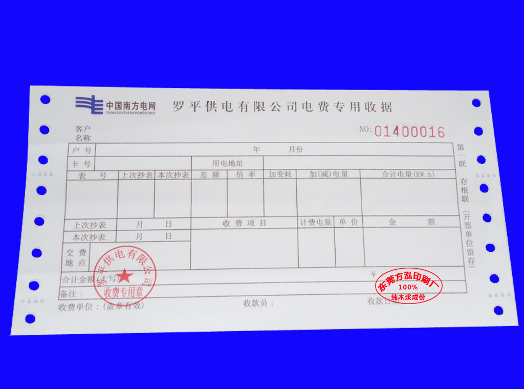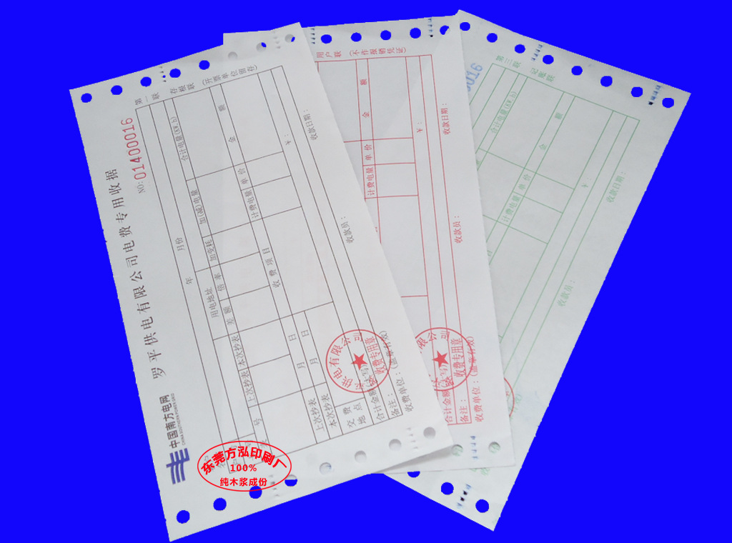专业印刷 电费收据无碳票据 三联费用代收费用 来样来图定制