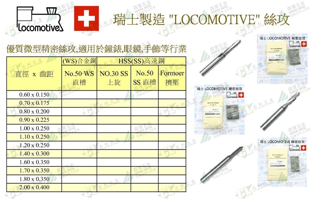 瑞士 LOCOMOTIVEM 火車頭 M0.9 x 0.225 高速鋼 上旋 丝攻/丝锥