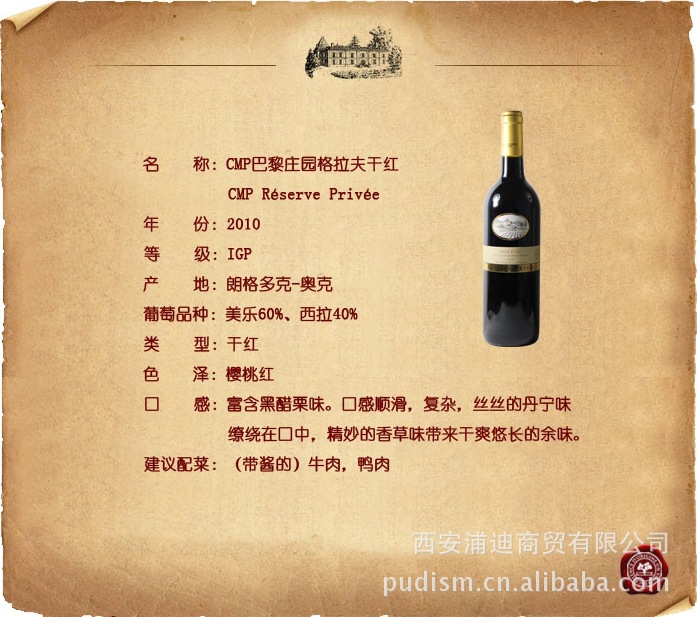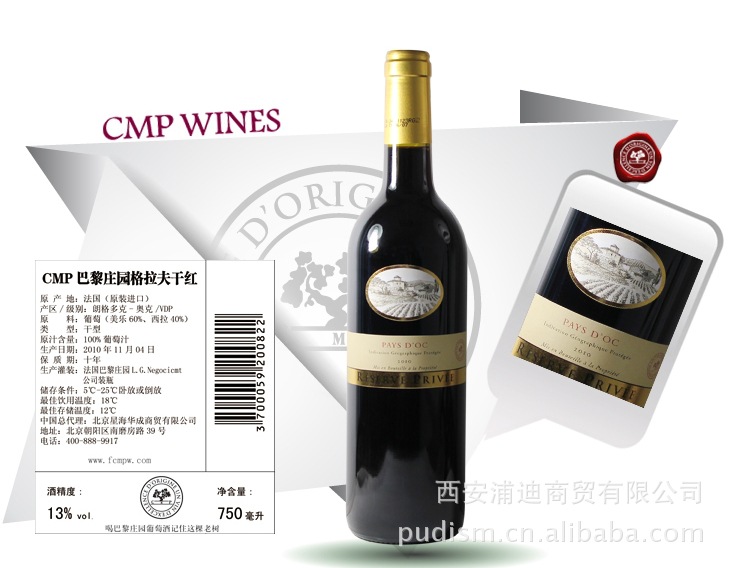 法国原装进口红酒 CMP巴黎庄园格拉夫干红葡萄酒