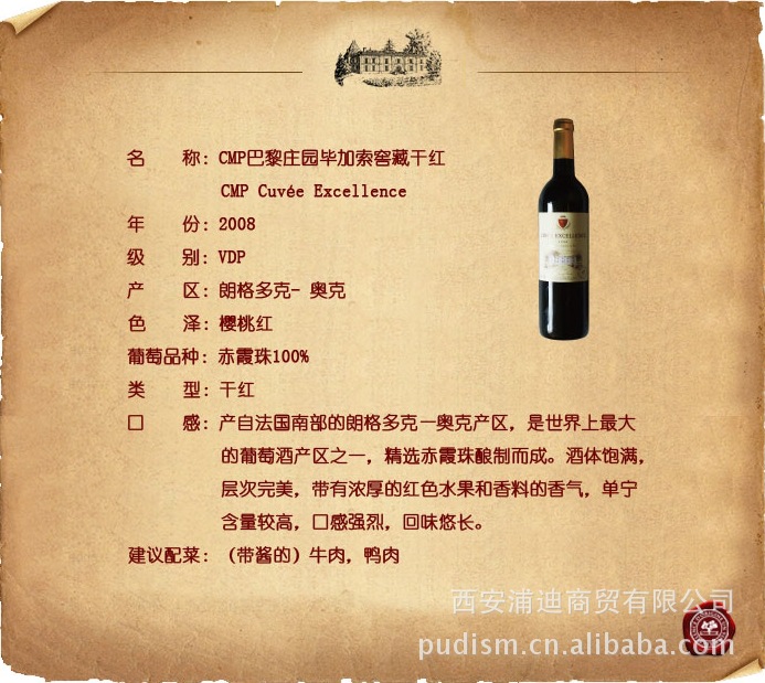 法国进口红酒 CMP巴黎庄园毕加索窖藏干红葡萄酒