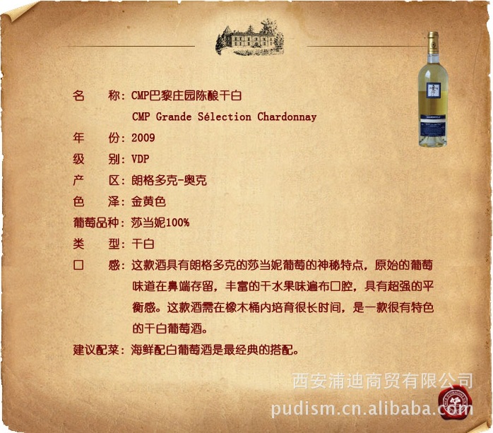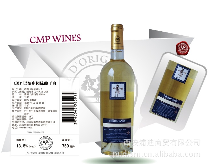 法国原装进口葡萄酒 CMP巴黎庄园陈酿干白葡萄酒