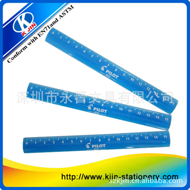 尺子厂家供应15cm蓝色PS材料直尺 刮不花的尺子