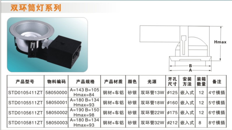 广东LED厂家批发 PLC双环管13W双环筒灯 超高亮