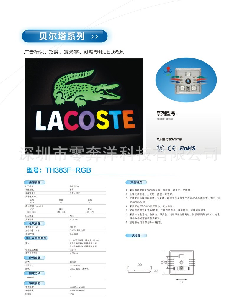 锌合金防水三灯高亮七彩模组,TH383F,零奔洋,质保两年
