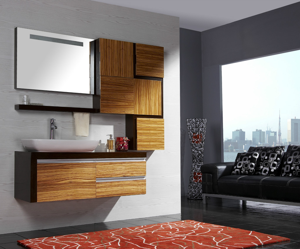 佛山兰泊卫浴实木多层防水板贴木皮浴室柜 浴室柜厂家 NT014