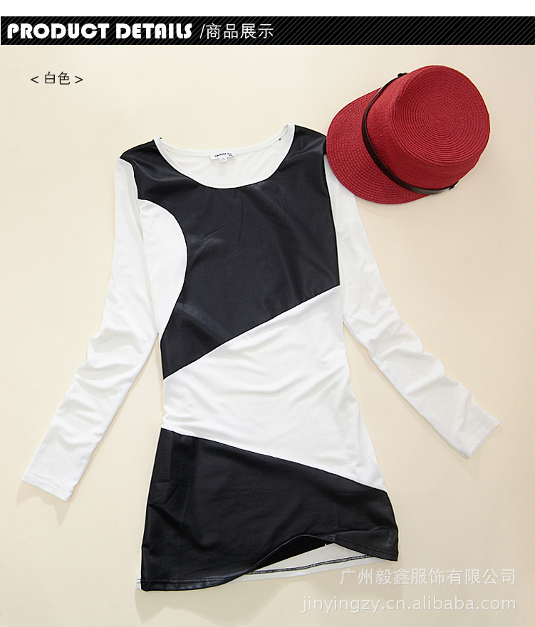 新品2011秋装新款淑女修身长袖pu针织女装休闲T恤