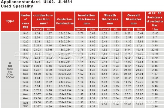 美国无卤阻燃耐寒防油防水电线SPE-1 SPE-2 NISPE-1 NISPE-2