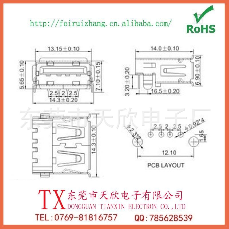 厂家供应车载充电器A母90度沉板焊线式连接器端子USB
