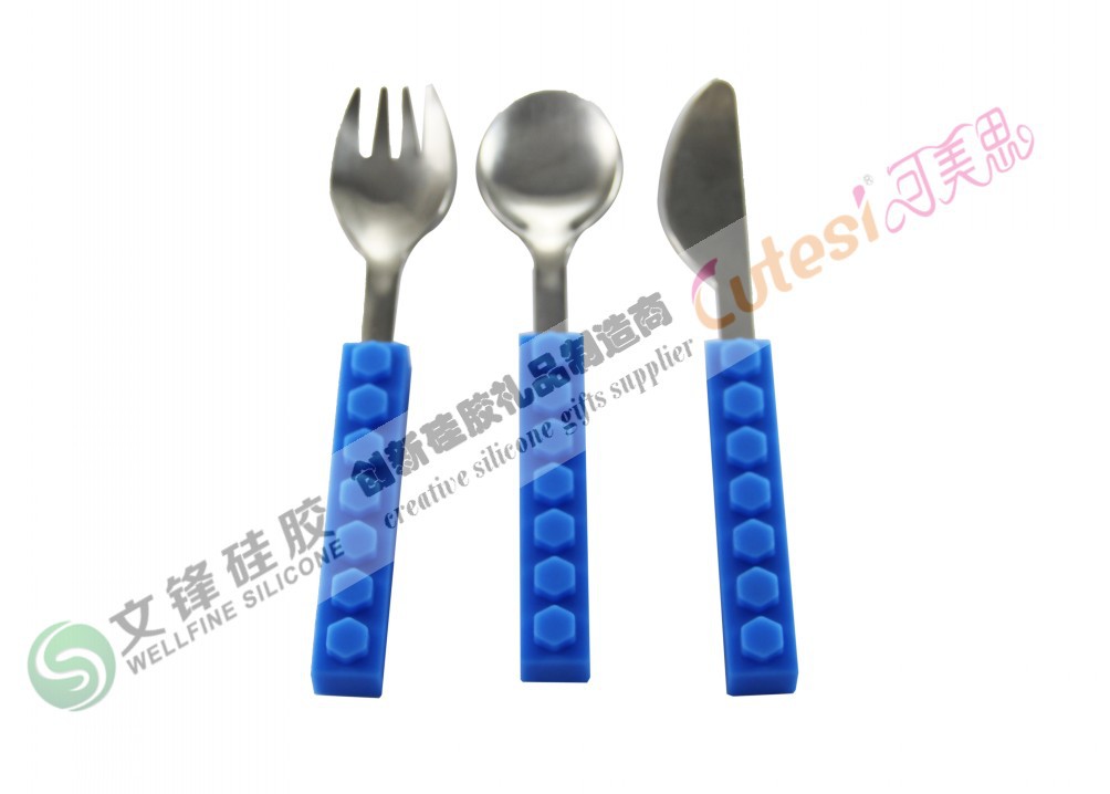 新年特供 创意环保不锈钢刀叉勺餐具套装乐高积木设计硅胶手柄