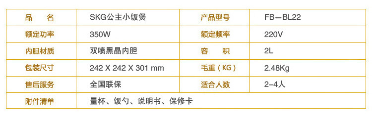 SKG电饭煲FB-BL22迷你电饭锅 批发 美观大方 欧式风格 苏宁联保