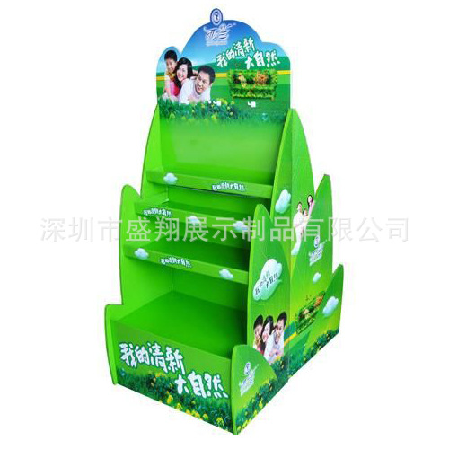 定制 绿色健康食品纸展示架 环保食品纸货架 带宣传头牌