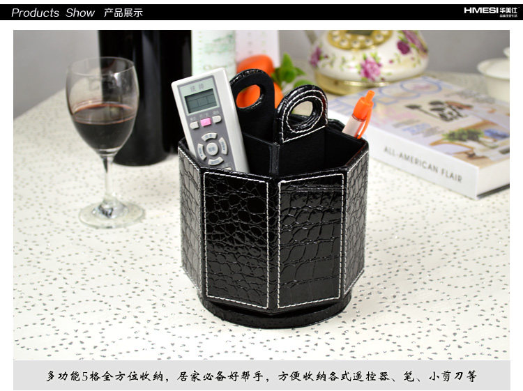 新品上市高档多功能办公笔筒 创意收纳盒旋转 皮革 工艺广告笔筒