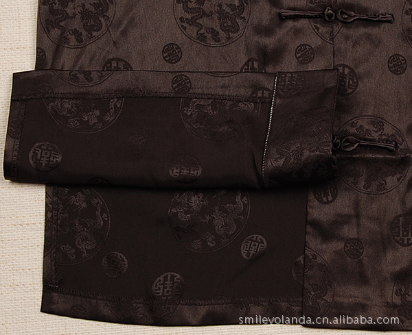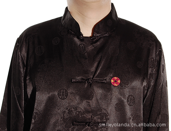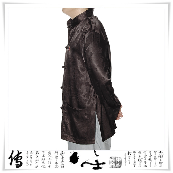 批发男唐装春秋款绸缎直袖(袖可卷)男太极衫-200690-黑色