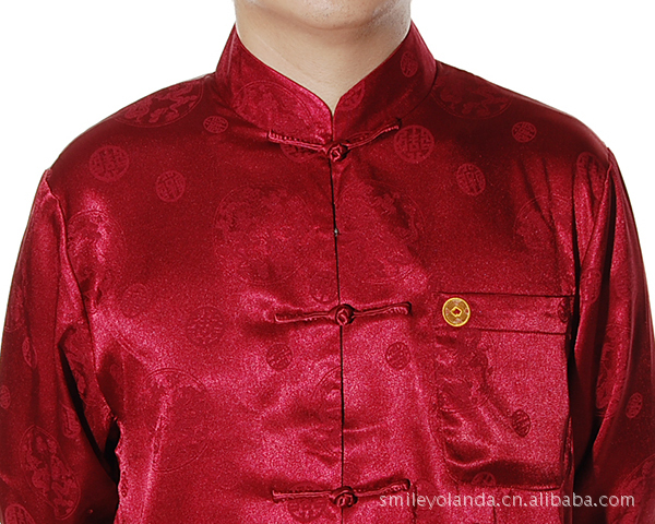 批发中老年男唐装绸缎胸前口袋(衬衫袖)男太极衫-200689