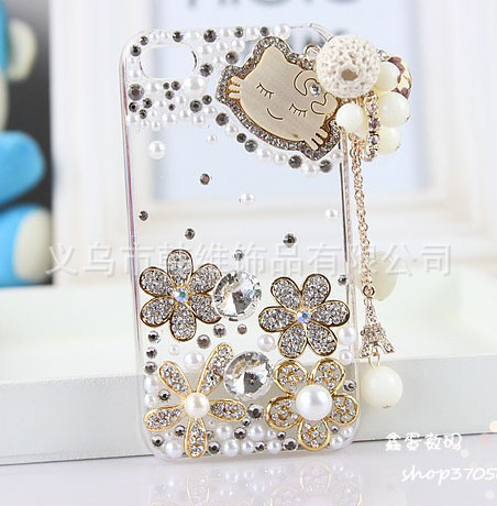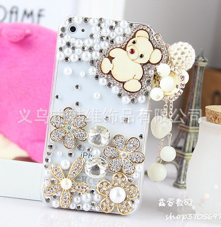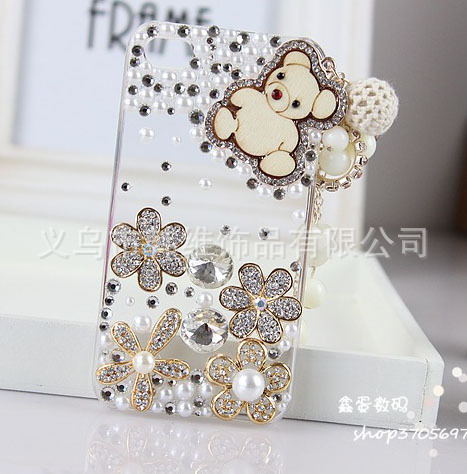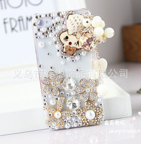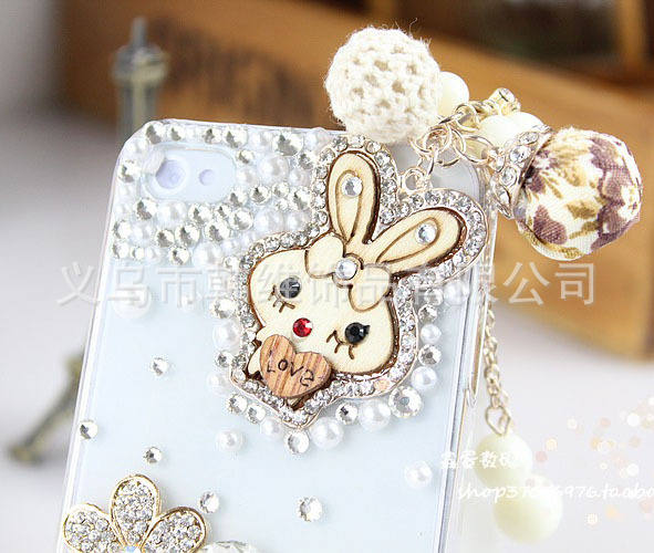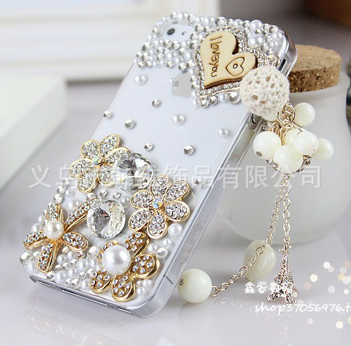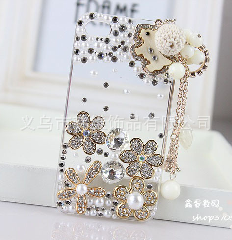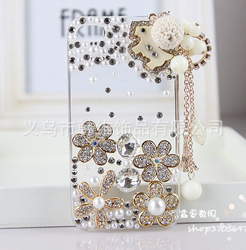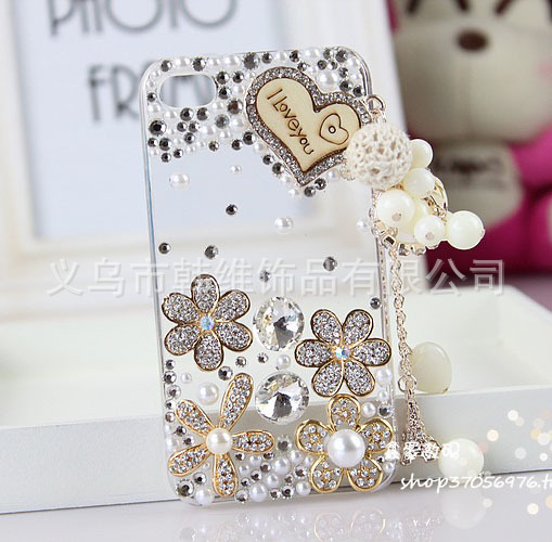 苹果iphone4手机保护壳 透明壳 四花瓣木片流苏 手机外壳批发