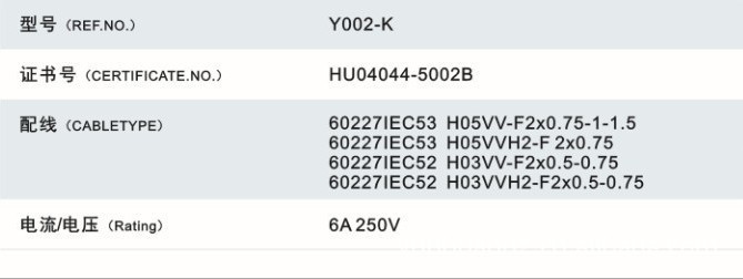 韩国认证两芯插头(可配标准八字尾)