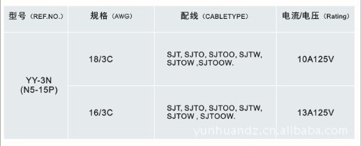 厂家直销UL美国N5-15P 3芯圆头插头电源线/云环美标UL power cord