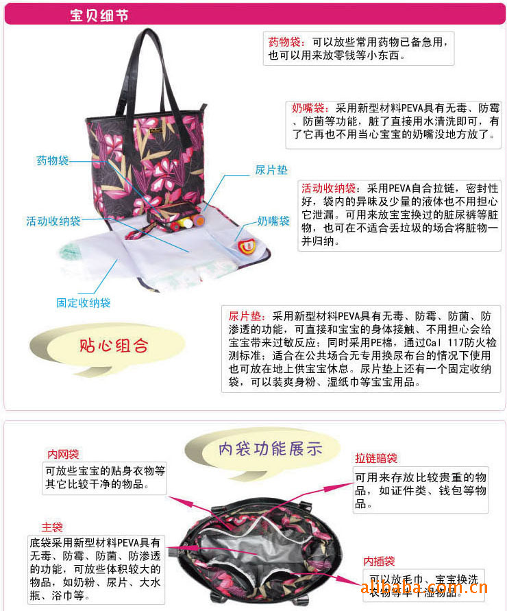 印花系列 妈妈包 单肩包 妈咪包 妈咪袋 多功能包