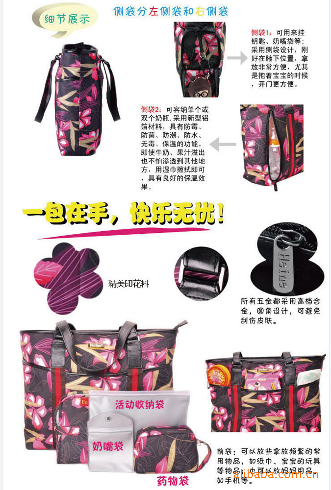 印花系列 妈妈包 单肩包 妈咪包 妈咪袋 多功能包