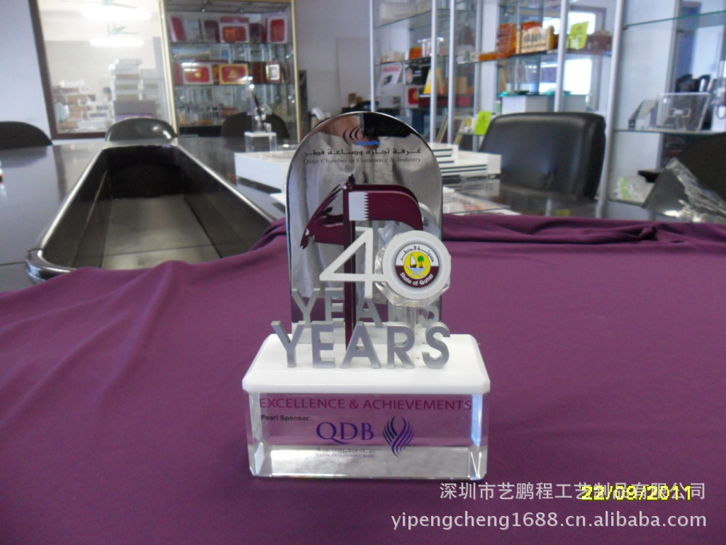 专业定制 奖杯礼品卡塔尔40周年纪念奖杯 100套以上免设计费
