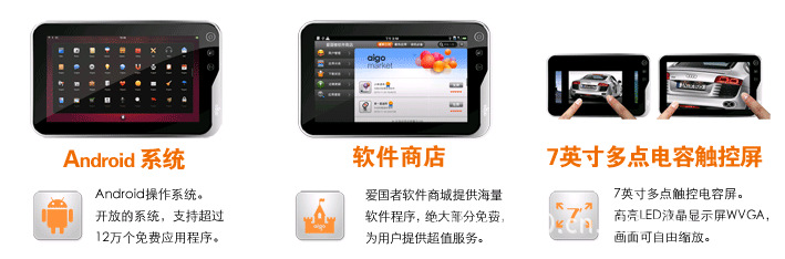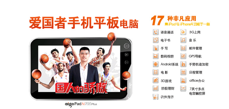 aigo爱国者N700PLUS 平板电脑安卓系统 蓝牙通话3G 导航GPS