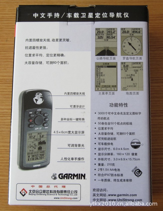 佳明72手持GPS导航 可漂浮防水设计 2.7寸反光屏
