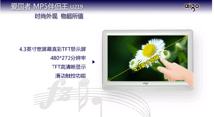 aigo 爱国者 MP5 U219 高清触屏 4.3寸 白色
