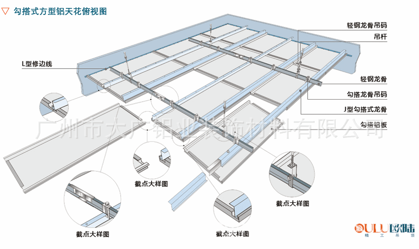条形铝扣板-防风铝条扣安装示意图鑫霸隆厂家直销