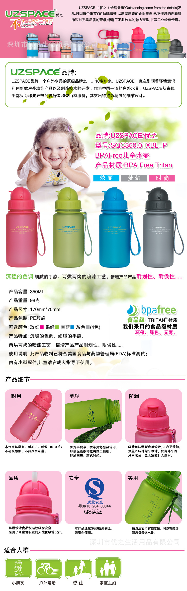 优之UZSPACE水之魔法师水杯,厂家直供硅胶腰环防烫直饮运动水壶