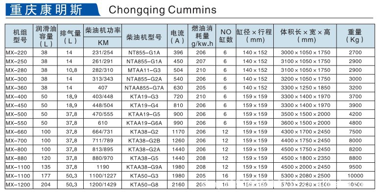 重庆康明斯柴油发电机组 300KW 310KW NTA855-G2A