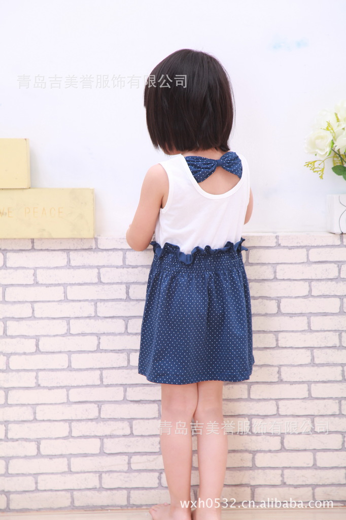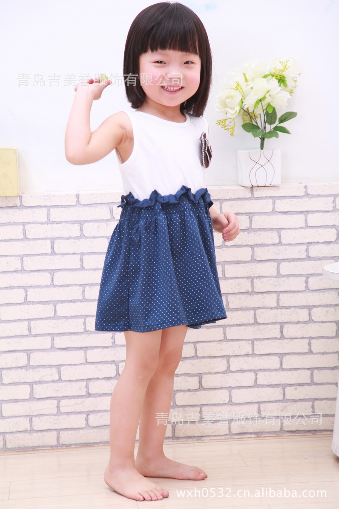 厂家直营 2012夏季新款韩版奥黛尔精品女童小点点蝴蝶结公主裙蓝