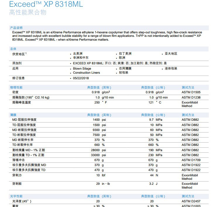 供应埃奇得XP 8318ML 薄膜级mPE茂金属代理商