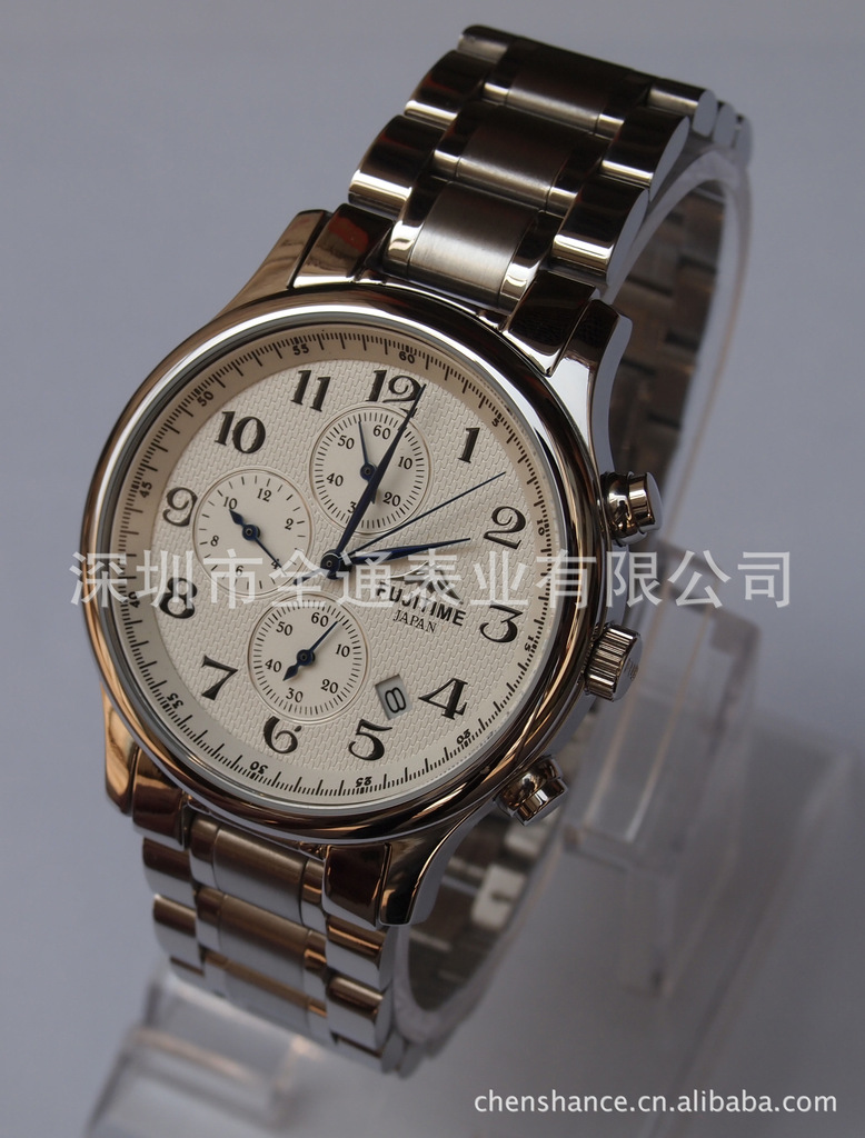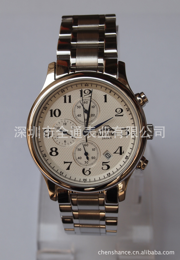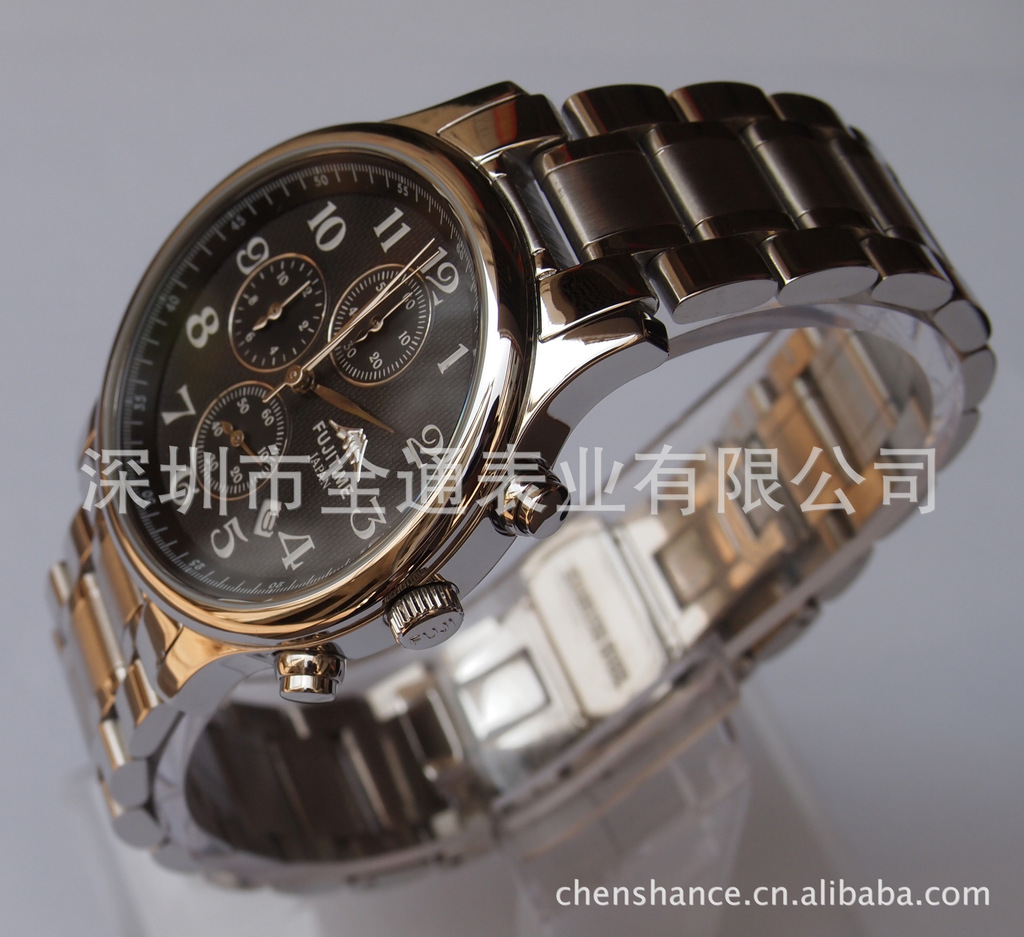 富士多功能石英表,六针手表,计时手表,全钢手表,进口机芯手表