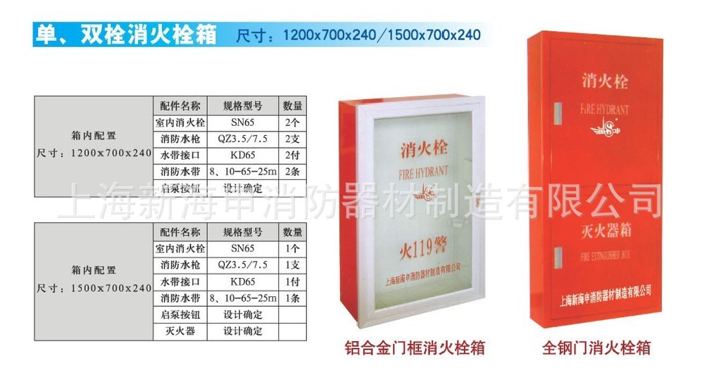 单、双消火栓箱1200*700*240/1500*700*240