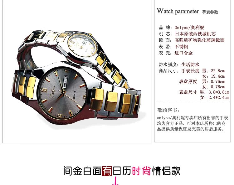厂家批发onlyou/奥利妮情时尚侣手表同款爆款 新款上市