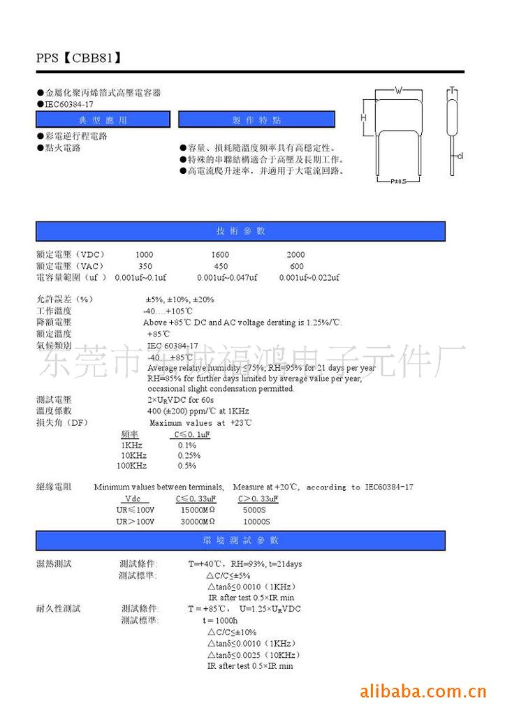 CBB81电容 PPS电容 金属化聚丙烯膜高压用途电容器