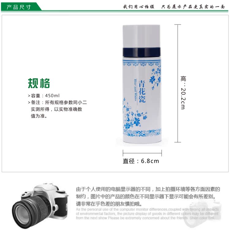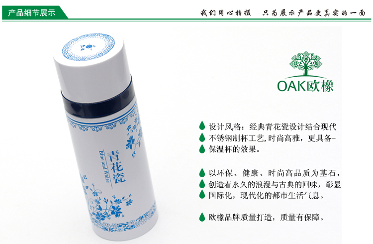 欧橡 青花瓷 保温杯 骨瓷杯 不锈钢陶瓷杯 礼品批发定制