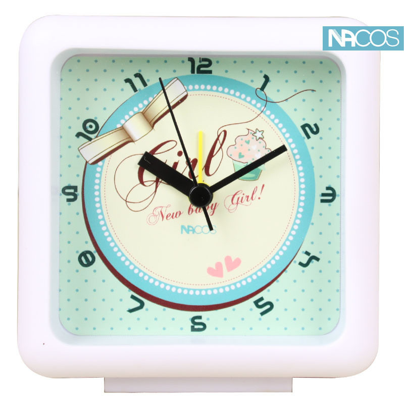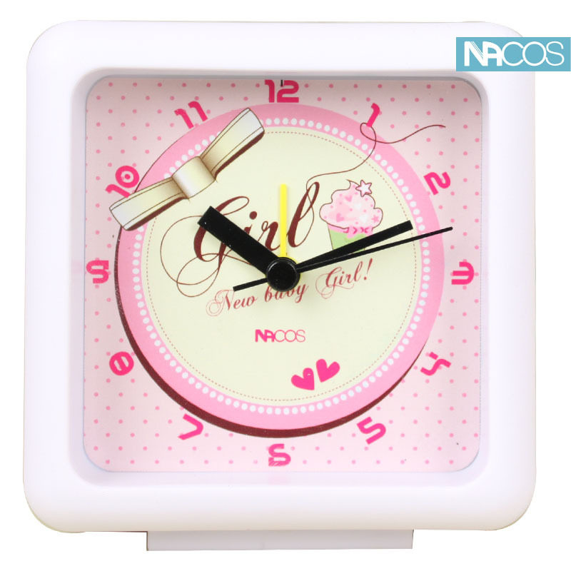 高洛nacos 婉约时钟 甜美公主 超静音卧室方形闹钟 3色の嫩粉