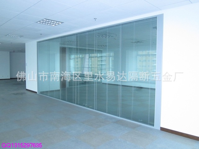 西安办公室铝合金中空百叶 透明磨砂钢化玻璃隔音成品高隔断墙