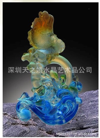 鲤鱼跳龙门 龙龟琉璃摆件 力争上游摆件