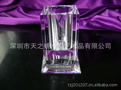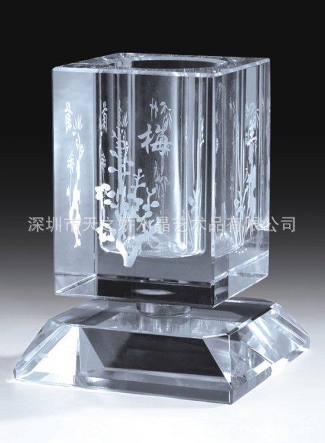 厂家直销水晶旋转笔筒 水晶办公笔筒 工艺笔筒摆件 四方形笔筒