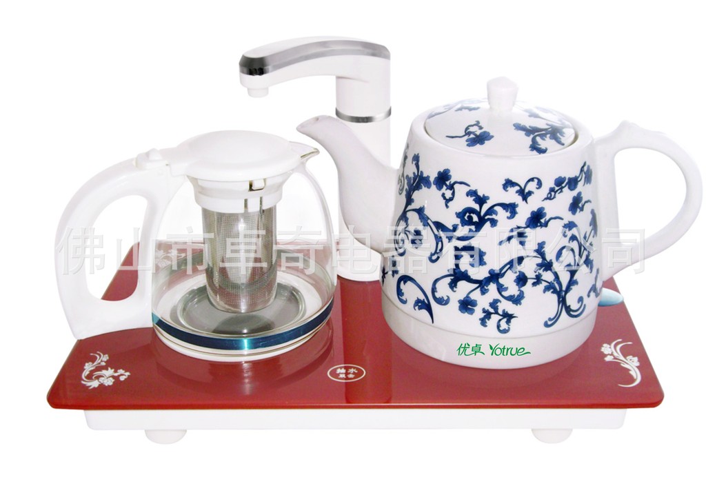 优卓yotrue新款双击兰花陶瓷电热水壶套装