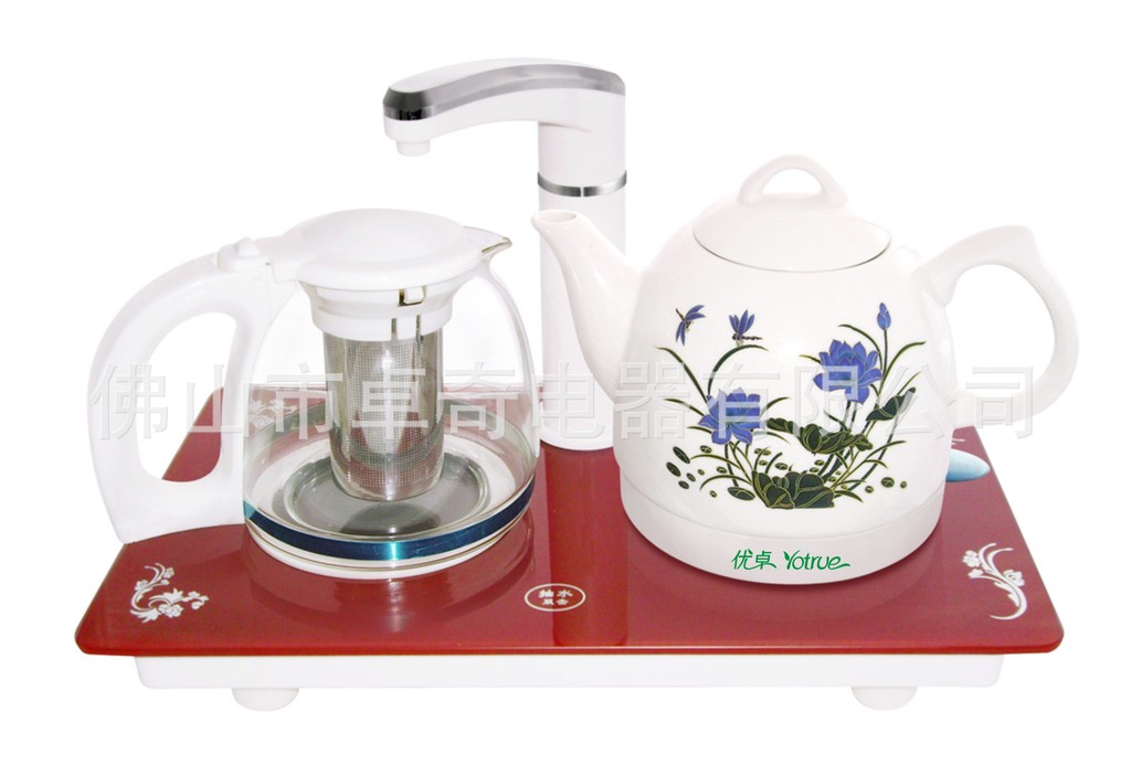 优卓yotrue新款双击红玫瑰陶瓷电热水壶套装