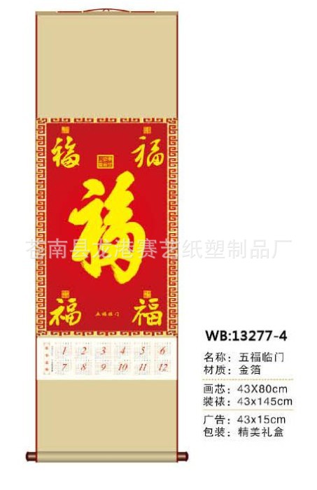 2013单张年历 挂历 福字挂历 丝绸挂轴 挂历