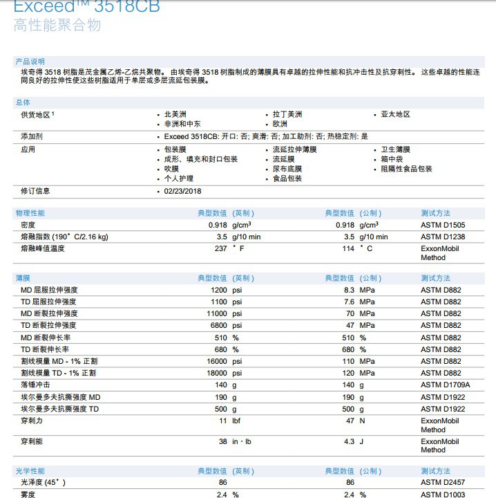 MVLDPE(茂金属)新加坡埃克森美孚1018MA