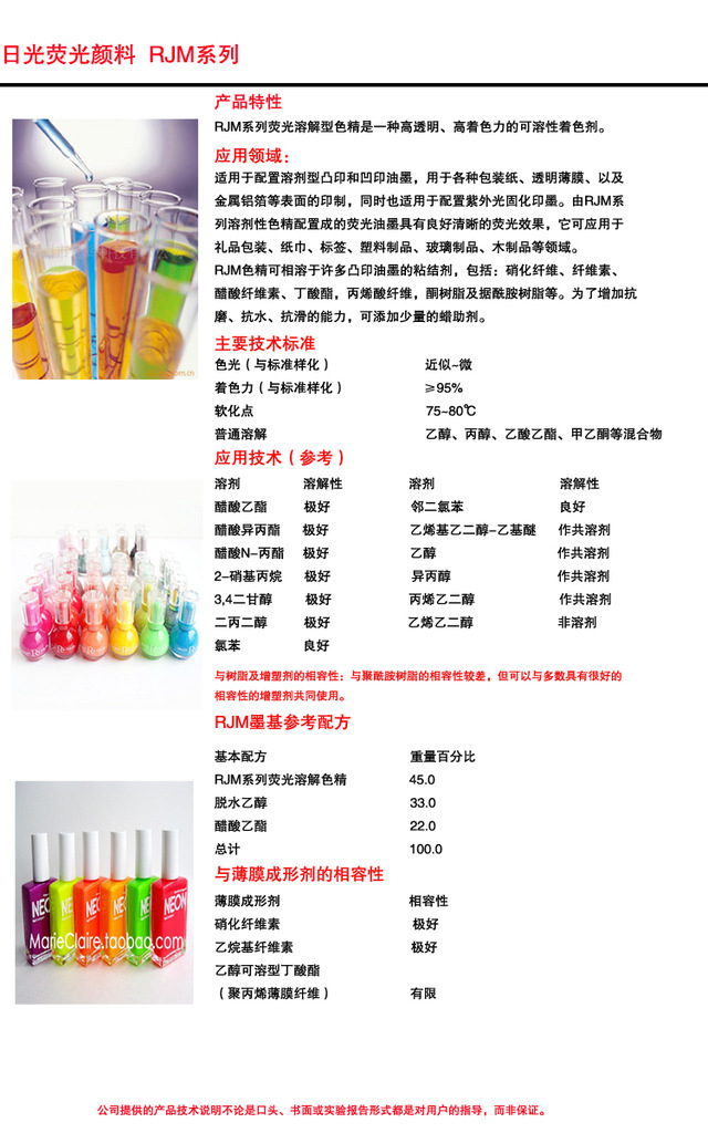 高透明、高着色力 RJM耐溶剂型荧光颜料 RJM-19荧光兰色
