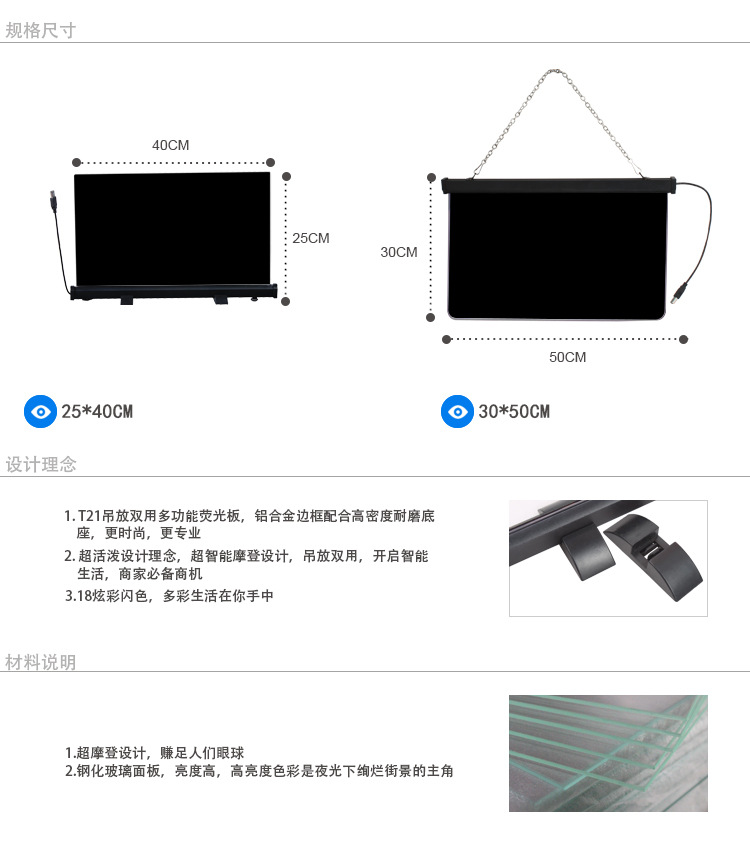 室内室外通用型电子荧光广告牌 手写荧光板 单边打光荧光板