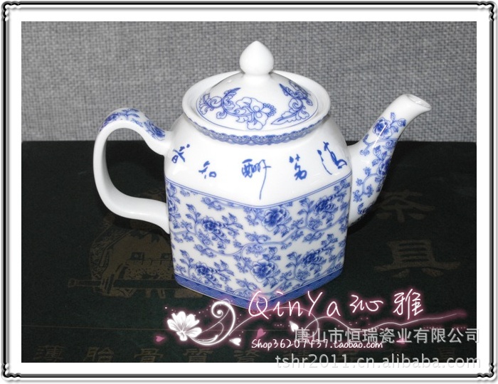 六方薄胎茶具套装 釉中彩 唐山优质骨瓷茶具批发