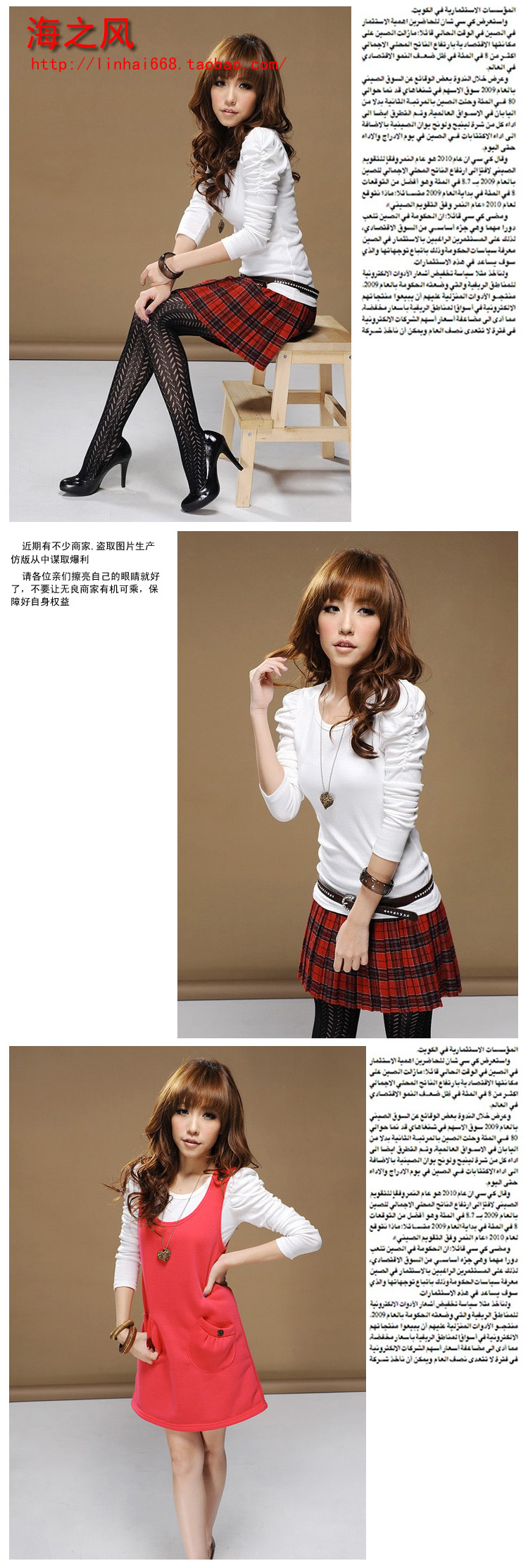 新款秋季韩版女装红色泡泡袖长袖打底衫 代理批发 一件代发 货